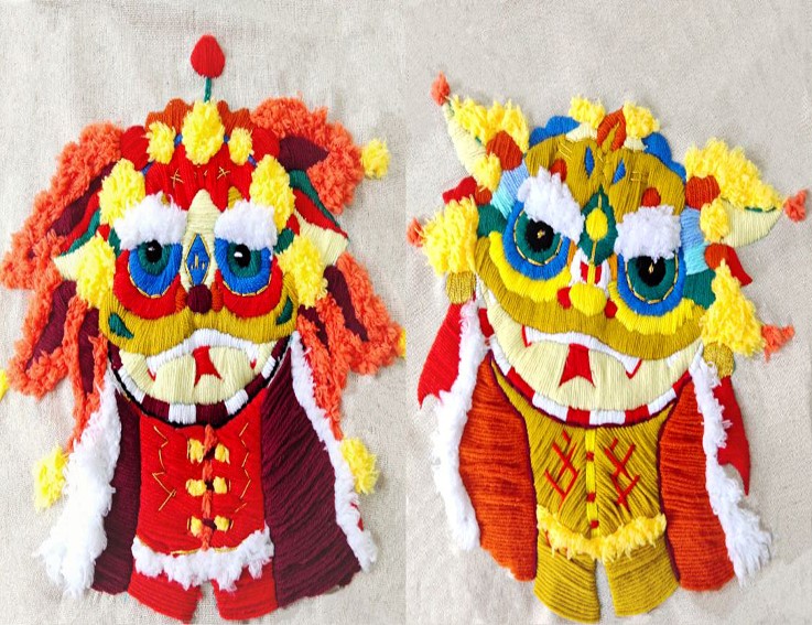 18级视觉传达设计专业王鸿跃采用毛线刺绣创作《祥瑞神兽》,其创意来自雷神山与火神山两座英雄医院,希望祥瑞的“雷神兽”与“火神兽”让疫区的新冠病毒早日退散。
