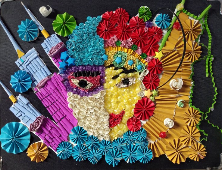 19级视觉传达设计专业史诺采用彩纸创作的《巾帼英雄》展现了战疫女杰如花木兰一般的英勇气概和巾帼不让须眉的英雄精神。