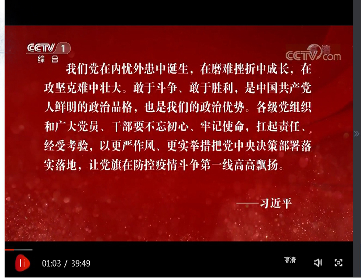 专题片记录了抗疫英雄的抗“疫”历程。疫情就是命令,防控就是责任。“我是党员,必须站出来。”“我是党员,我先上……”影片全景式再现了自新冠肺炎疫情发生以来,在以习近平同志为核心的党中央的坚强领导下,各级党组织和广大党员干部闻令而动,坚守在抗击疫情第一线,扛起责任,经受各种风险考验,把初心写在行动上。发生在抗疫一线激励人心、催人泪下的感人事迹,展现了共产党人的英雄本色。