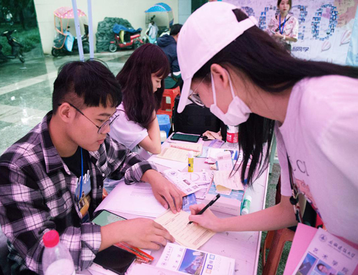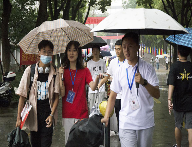 迎新的老师和志愿者们冒雨忙碌的身影如一道道美丽的风景线,周密的安排、亲切的问候、贴心的服务、真诚的祝福,温暖了每一位艺术学院新同学。