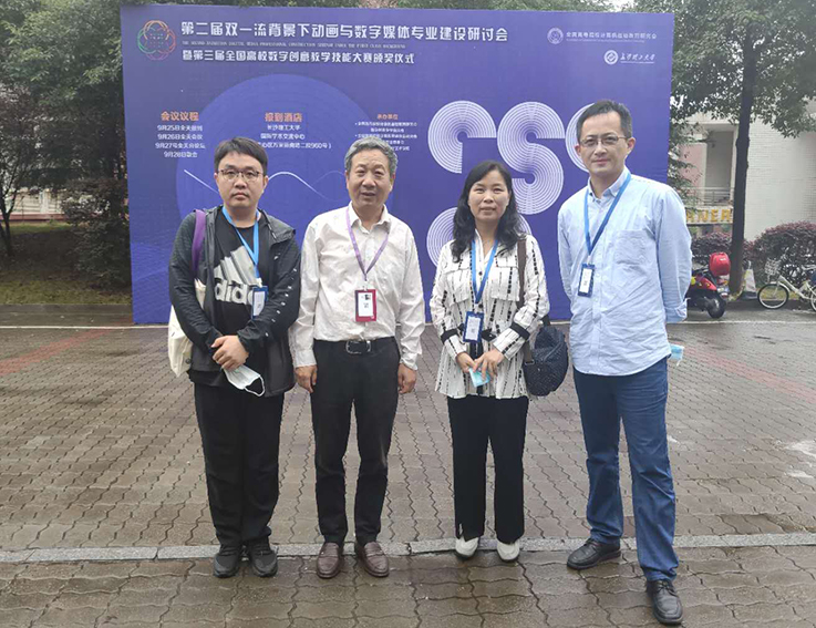 (图1 参加9月26日于长沙召开的“第二届双一流背景下动画与数字媒体专业建设研讨会”,与专家合影)