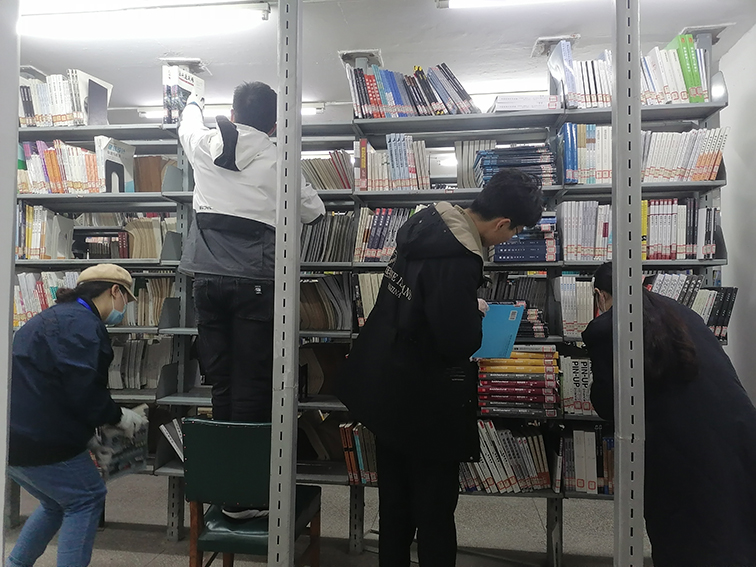 3月3日,艺术学院团委学生会协同图书馆读者协会清扫整理北区校图书馆。年轻的身影三五一群,分工明确,配合默契。