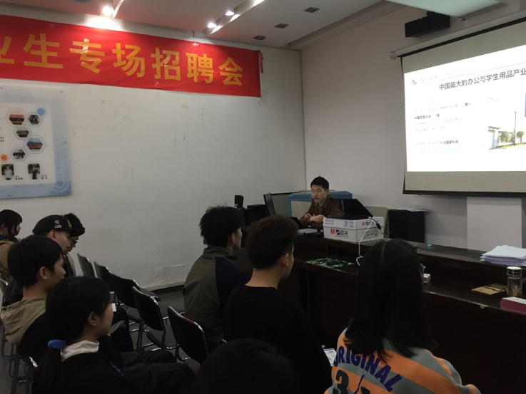 得力集团是中国最大的办公与学习用品产业集团,是中国制造业企业500强之一,目前有十几名艺术学院毕业生在公司的研发设计部门工作。得力集团高度认可我校学生的专业水准与综合素质,希望今年可以招收更多的优秀毕业生。环境设计、视觉传达和动画专业的同学详细了解了公司的发展前景、工作环境与工资福利等信息,纷纷投递简历和个人作品,积极推荐自己,希望能尽快签约。