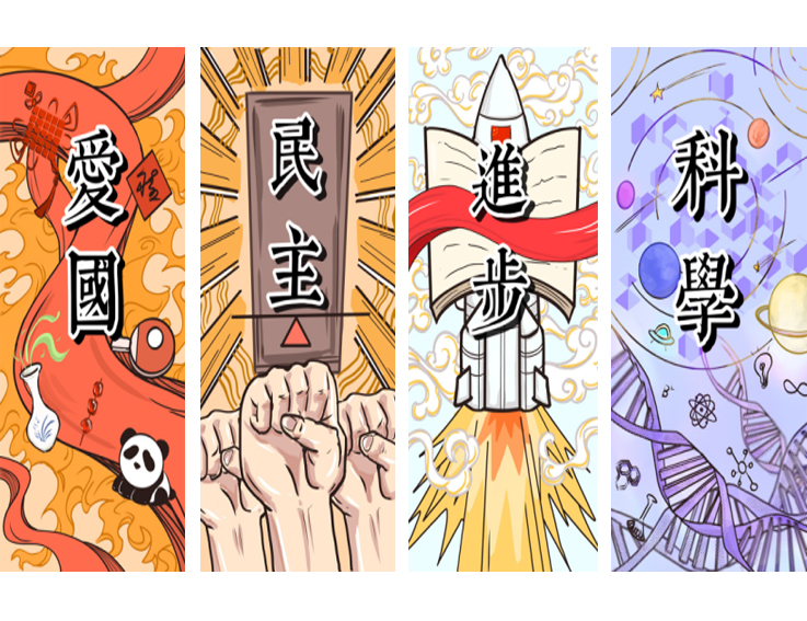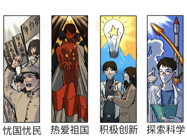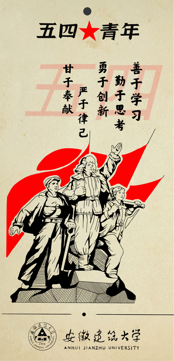 19级视觉传达专业张潮以爱国、民主、进步、科学作为创作的核心,展现新中国的光辉成就,表达作者对五四精神的理解和传承,鼓励广大青年深入领会五四精神的内涵,用实际行动去开拓新征途。