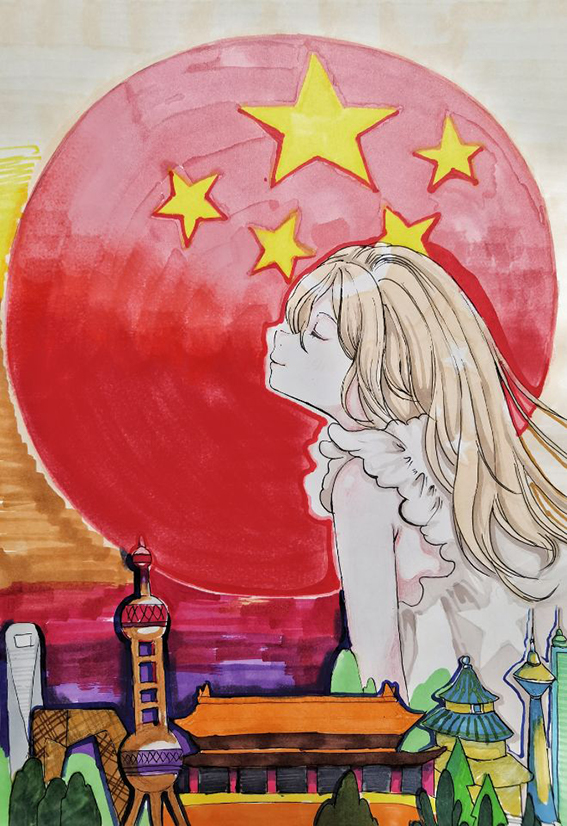 20级环境设计专业王世鑫通过阅读《知史爱党,知史爱国》一书,创作绘画作品《国家》。从古至今,中华民族一直都闪耀着自己独特的光芒。强大的祖国是我们美好生活的保障。
