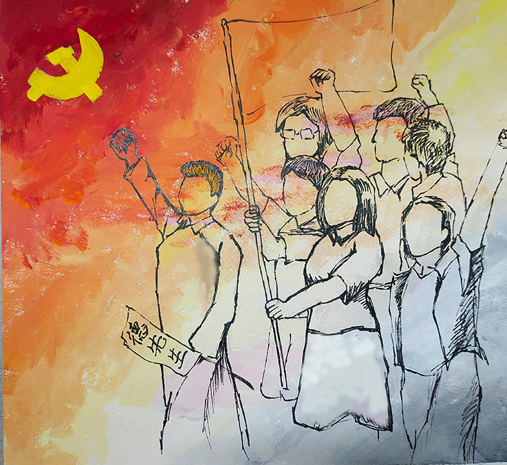 20级视觉传达专业薛志璐通过阅读《中国共产党的创立之路》一书,创作水粉画作品《光明》。通过颜色的渐变寓意着从黑暗的旧社会走向光明的新中国,党带领广大人民创造崭新的美好生活。青年是党的新鲜血液,是时代发展的先锋力量,广大青年要坚定信仰,时刻跟随党,向着光明前进,做时代的接班人。
