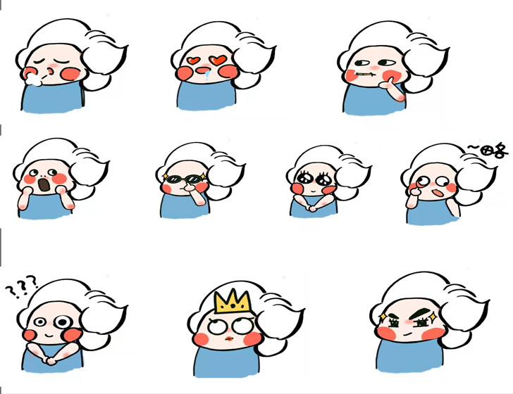 19级环境设计专业张祎霖创作的表情包《建大蓝》,以“情绪”为主题,从安建大的校徽中获得创作灵感,水滴的外形搭配极简造型,体现不同的情绪变化。