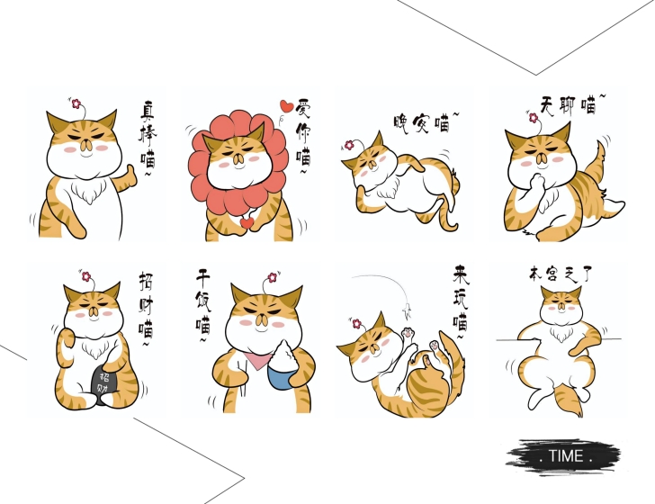 19级视觉传达设计专业史诺创作的表情包《治愈生活,大橘为重》,以日常生活为主题,以校园中的猫为创作原型,生动有趣地描绘了橘猫憨态可掬的形象,提醒我们要有一双善于发现美好的眼睛。
