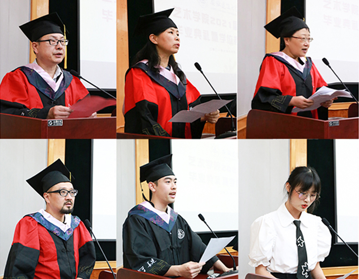 本网讯 6月16日,艺术学院2021届本科生毕业典礼暨学位授予仪式在北区F楼报告厅举行。校党委常委、副校长成祖德出席,艺术学院党政负责人、教师代表、毕业班辅导员及2021届全体毕业生参加典礼。