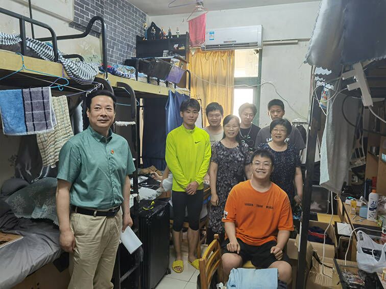 本网讯 为了解学生入住南校区宿舍的学习、生活情况,6月29日中午,艺术学院副院长邢瑜、党委副书记潘青及部分辅导员老师走访了南校区学生宿舍。