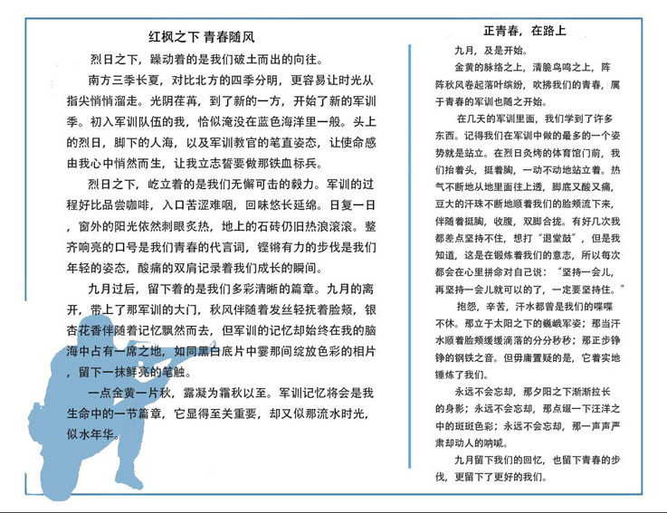 本次征文活动提高了同学们对于军训活动的理解与认识。九月留下了同学们的美好回忆,留下了同学们的青春步伐,也为同学们教授了“青春校园第一课”。愿新同学们能够尽快适应大学校园生活,让青春的活力充满校园。(作者:孙长玥 万顾可馨 王迪;审稿:潘青)