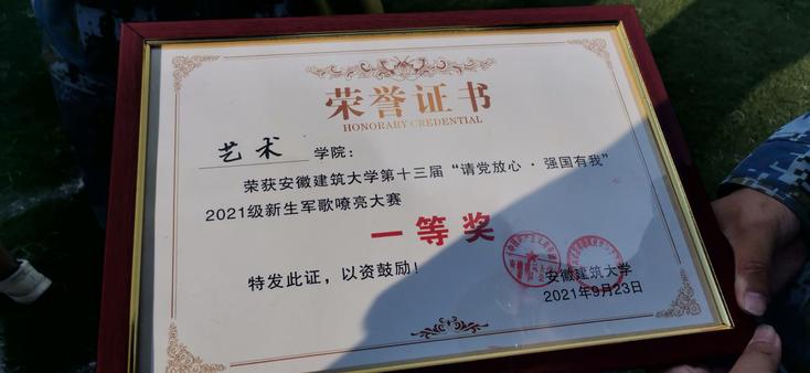 艺术学院在本次军歌大赛中以总分第一的成绩获得一等奖。这次活动加深了新生对于军歌的了解与认识,同时增强了集体凝聚力,让同学们刚进入大学校园便开始懂得团结的力量,并学会以更高的目标要求自己,期待2021级的新生同学们在大学的舞台上书写新的人生篇章。(作者:袁婧卓;审稿:潘青)
