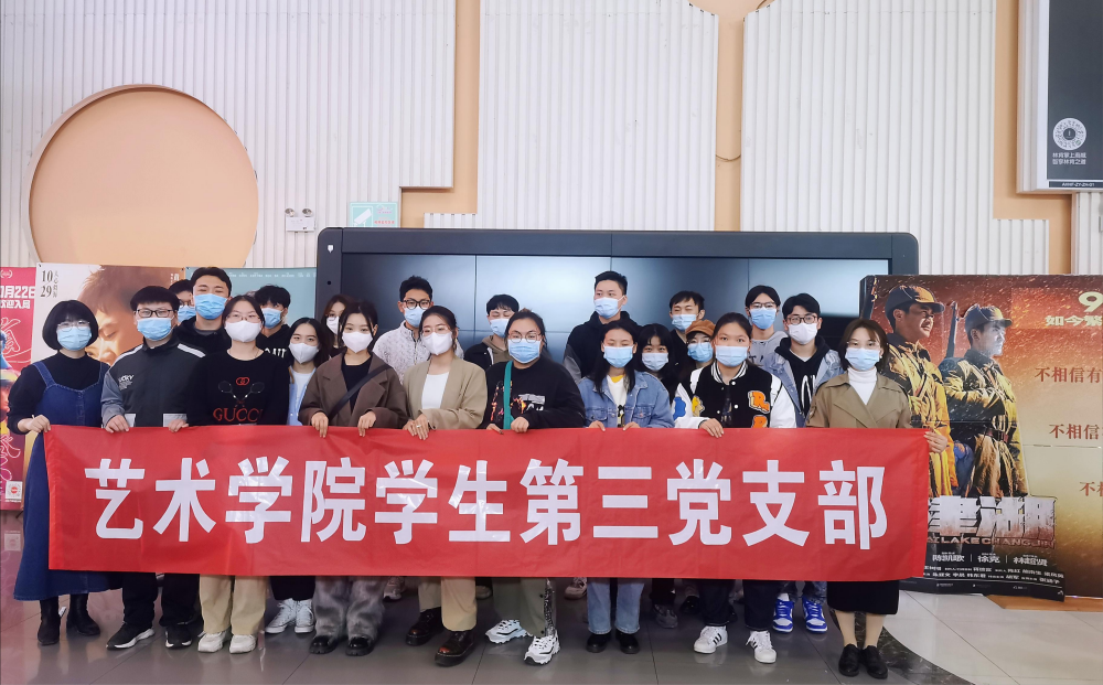 本网讯 为进一步深入学习党史,加强学生党员爱国主义教育,11月3日下午,艺术学院学生第二、第三党支部在支部书记和辅导员老师的带领下观看了电影《长津湖》。