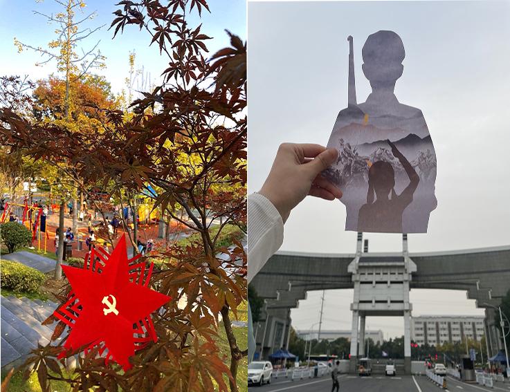 本次团日活动紧扣主题,采用剪纸+摄影的形式,以生活场景和校园环境为背景,将民间剪纸艺术与主旋律教育、红色文化紧密结合,描绘了祖国的大好河山与世代相传的革命薪火,为优秀传统艺术表现形式注入了红色基因,赋予了全新的使命。一幅幅作品展现了艺术学院青年大学生对革命意义的理解和红色精神的传承。