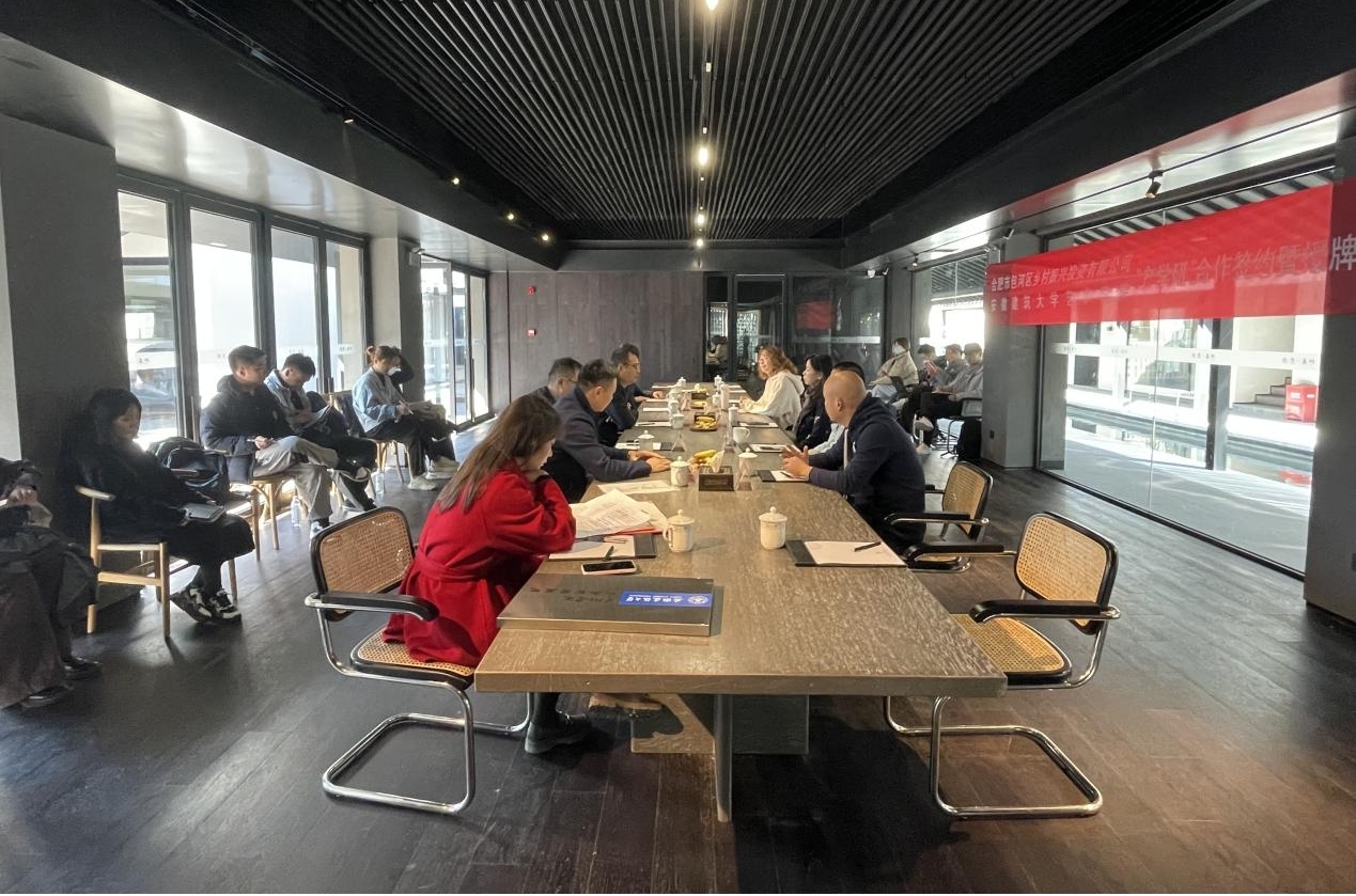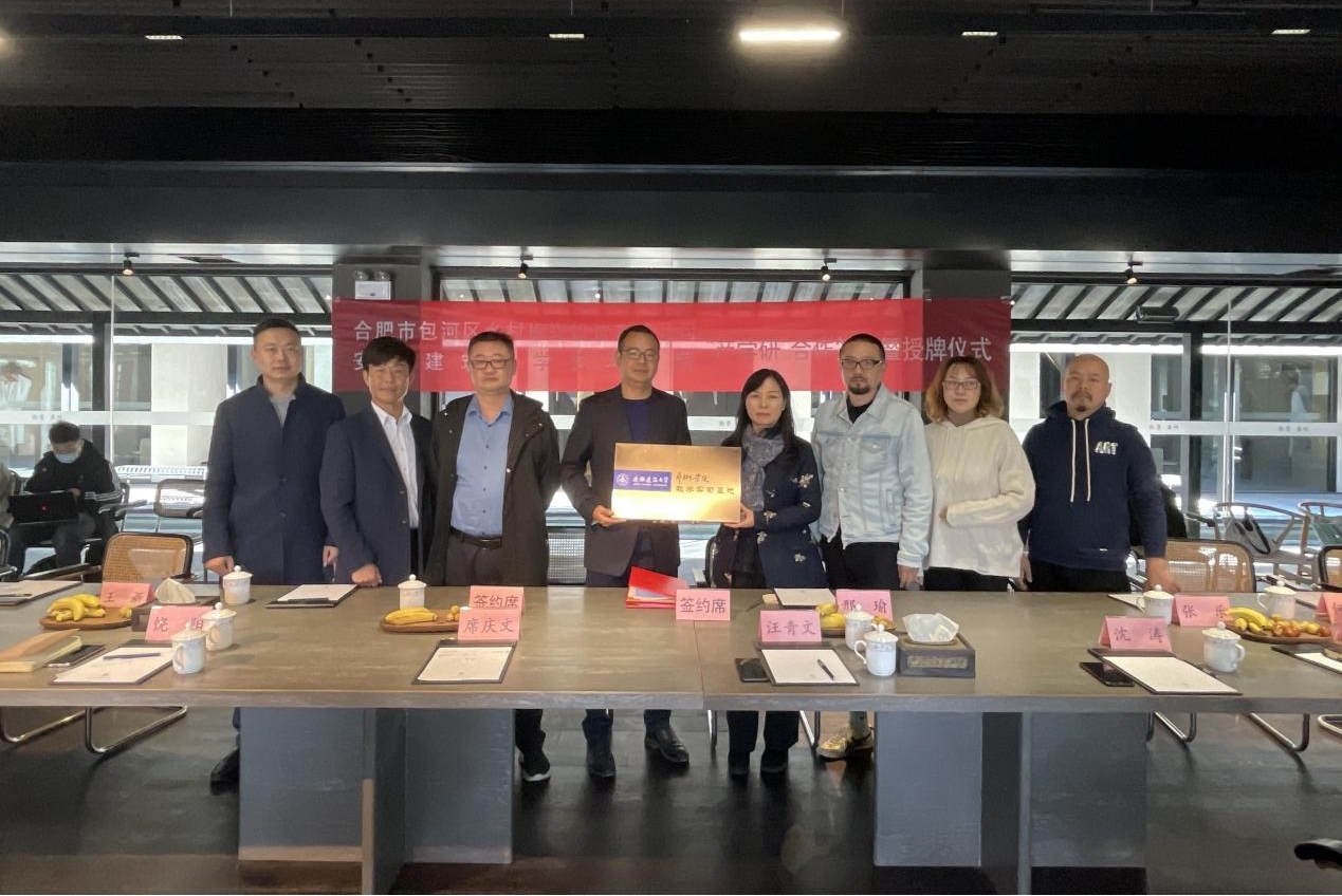 本网讯 11月11日,艺术学院与合肥市包河区乡村振兴投资有限公司在圩美磨滩民宿举行“产学研”合作签约暨教学实习基地授牌仪式。学院副院长邢瑜、各专业系、教研室负责人等与包河区乡村振兴公司总经理汪青文、副总经理沈涛等出席签约仪式。