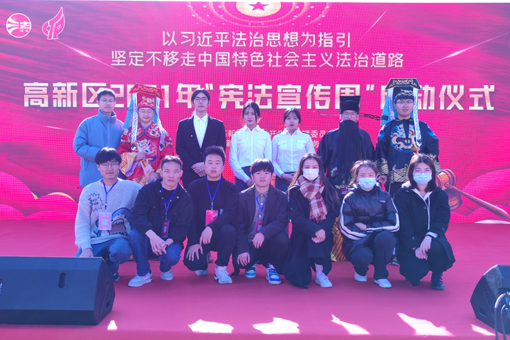 本次活动以习近平法治思想为指引,坚定不移走中国特色社会主义法治道路为主题,参加演出的同学们积极准备,认真表演,将法律知识的宣传普及融入到表演之中,助力宪法宣传公益活动。