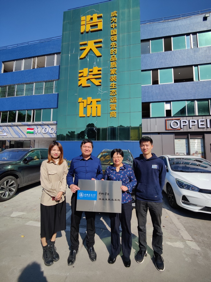 近日艺术学院党委副书记潘青带领2022届毕业班辅导员陈晓天前往深圳,与深圳浩天装饰设计工程有限公司、深圳红柏空间设计有限公司签订就业基地合作协议并授牌,看望了我校2014届校友姚茂华等同学,走访校友创办企业,与校友畅谈。