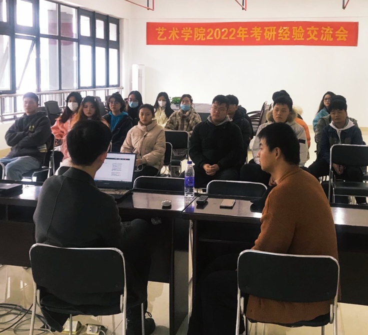 本网讯 12月8日中午,艺术学院2022年考研经验交流会如期举办,录取本校的艺术学院21级研究生戴辰阳、刘正增同学为大家答疑解惑、传经送宝。