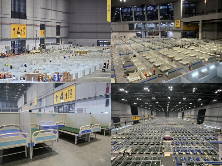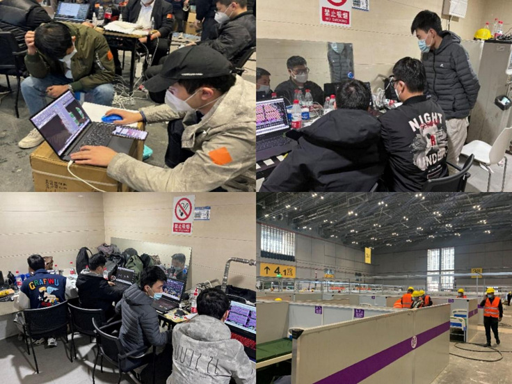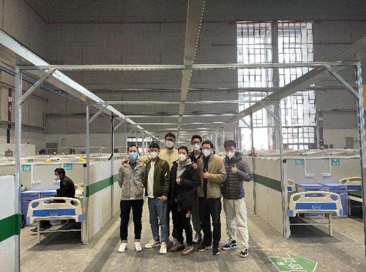 为确保方舱医院顺利完成,深化设计的工作极其重要,需要快速反应。以王昱博为现场设计小组组长,康声远、孙磊等设计师组建的深化设计团队,秉持初心,克服了现场办公难,食宿不便等难题,每天只睡不到三个小时,经过96小时鏖战,完成3号馆、4号馆建筑面积近3万平方米轻钢龙骨架设、彩钢夹芯板起竖、移动洗漱间安置、电缆敷设,地胶铺贴等工作,提供了6748张床位。在时间节点内快速、高质量交付,为上海打赢疫情防控攻坚战提供有力保障!(作者:孙磊 潘青;审稿:张红亚)