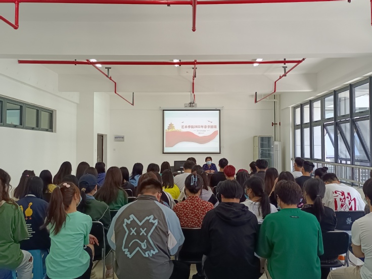 本网讯 为加强共青团组织的建设,在五四青年节来临之际,艺术学院团委2022年秋季团课开班,五十名同学参加了本次团课学习。