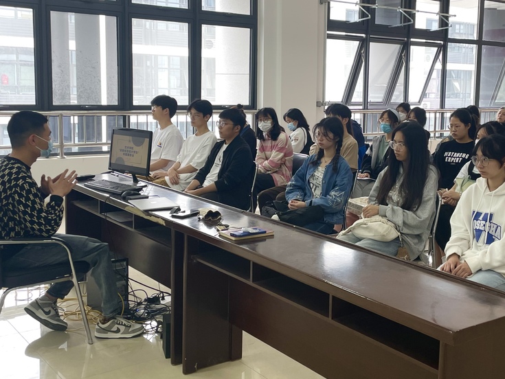 报告会中,曹逸磊向同学们分享了自己大学三年以来的经历。来自湖南益阳农村的他,2020年大二时不幸患上了恶性骨肉瘤并截肢,通过一年多的努力康复,于2021年9月复学返回安建大校园。