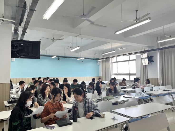 活动伊始,外国语学院的张卓亚老师和艺术学院的雷媛老师介绍了口语交流系列活动的主题。在一片欢声笑语中,同学们纷纷上台用英语进行自我介绍。大家渐渐熟悉后,同学们根据抓阄的结果分成了14个小组,每个小组有一位英语专业的同学和1-2位艺术学院中外合作班的同学。同学们热情地互加好友,积极地分享英语学习心得,并约定一周举办一次英语口语练习活动。