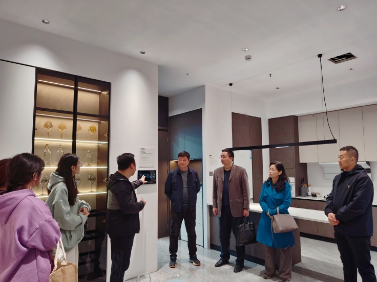 在实景展厅,方育电器柴代斌副总经理介绍了公司的基本情况、发展蓝图及人才需求,展示了方育电器智慧家居的设计理念及实景设计。