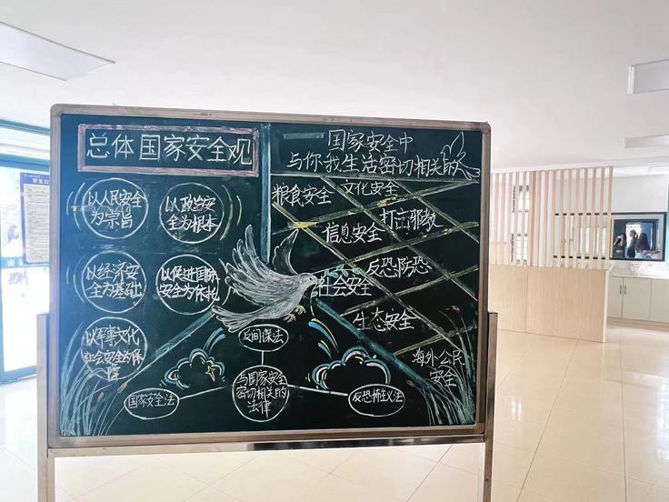 公开课上同学们学习国家安全知识,生活中每位同学也都积极争做他人的“国家安全宣传员”。同学们将自己学到的知识活学活用,制作国家安全主题宣传黑板报,普及国家安全教育知识,带动更多同学了解国家安全人民防线的意义与保卫国家安全的正确方法。