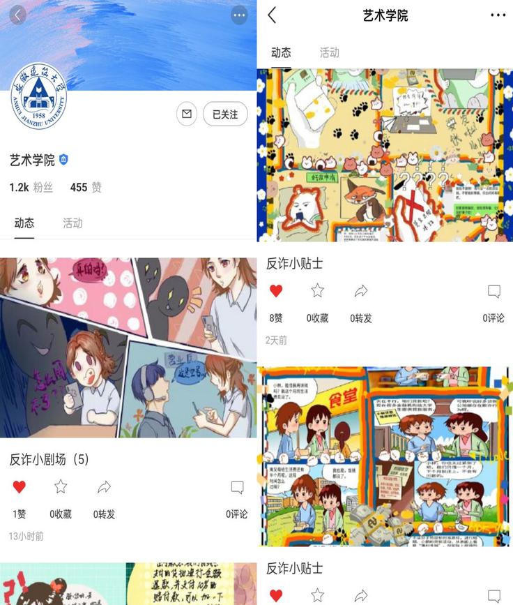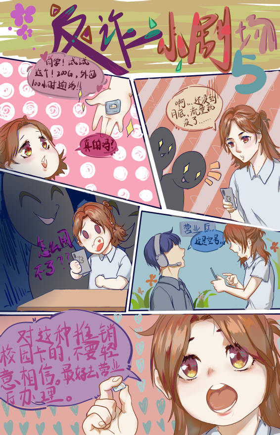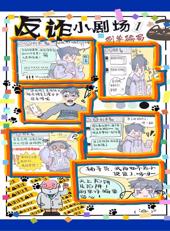 大学生是电信诈骗受害高发人群,极易遭受以网上兼职、低价网购、中奖通知、低价订票等名义实施的诈骗,涉及面广、受害者多、受损金额较大。 反诈小剧场基于真实的诈骗案例进行艺术创作,以漫画的形式形象表达,通过易班平台每日发布,提升同学们安全防范意识和反诈骗能力。