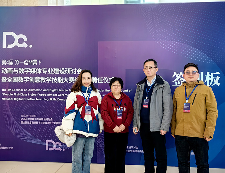 本网讯 12月29 日,艺术学院潘青副书记(主持工作)、黄朝晖副院长一行四人参加了“第四届双一流背景下动画与数字媒体专业建设研讨会暨全国数字创意教学技能大赛终评委聘任仪式”。本次会议由全国高等院校计算机基础教育研究会、吉林师范大学主办,全国高等院校计算机基础教育研究会数字创意专业委员会、吉林师范大学传媒学院承办。参加研讨会的有教育部动画与数字媒体专业教指委的委员、动画行业资深专家学者以及全国160多所高校的动画与数字媒体专业教师。