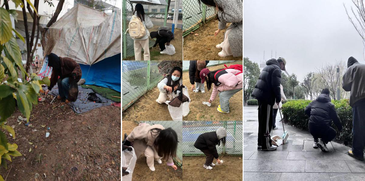同学们积极清理垃圾和保护植被,对校园道路旁的各类废弃物进行了认真清理。