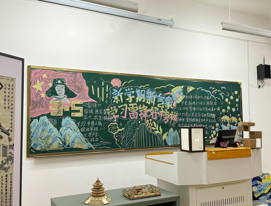 23级环境设计3班、视觉传达设计2班的学生们,绘制板报再现雷锋精神的内涵,以此表达对雷锋的深深敬意和纪念之情。