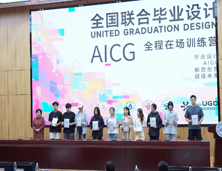 AIGC全程在场是2024全国联合毕业设计的亮点之一。全国联合毕业设计紧跟技术前沿举办的AIGC论坛、工作坊、助农“AIGC问诊室”等系列活动,得到社会各界的广泛关注。2024年以来,刘丹通过联合毕业设计探索AIGC工具的创新应用,让参与毕业设计的学生更好地发挥创意思维和专业技能。刘丹在分享中说,AIGC不仅拓宽了艺术领域的创作空间,还能将技术发展和艺术创新融合在一起,真正激发学生们的创造力。