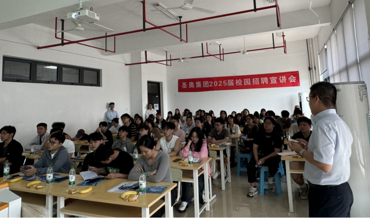 本网讯9月25日,艺术学院2025届毕业生首场专场招聘会在紫云路校区徽韵楼7207教室拉开帷幕。此次专场招聘公司为位于杭州的圣奥集团有限公司,该公司是一家集办公家具、生活家居、置业投资于一体的企业集团,多年被评为中国办公家具品牌综合实力第一名。