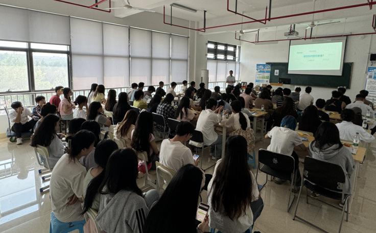 公司招聘人员介绍公司基本情况及招聘需求,宣讲会学生参与度高、现场气氛热烈,企业宣讲人员向同学们详细地介绍了公司定位、企业文化以及入职人才培养计划,并详细解答了同学们对工作岗位的工作内容以及福利待遇的疑问。