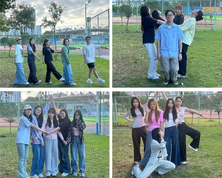 金色的阳光洒在绿茵草地上,同学们在清新的秋风中尽情享受运动的乐趣。在这场洋溢着青春气息的“邂逅秋天”趣味运动会上,大家共同参与了“123,秋天到了”、“传达秋讯”、“聆听秋声”和“记录秋天的你”等活动,在紧张有趣的竞赛中锻炼了身体,收获了快乐和友谊。特别是“记录秋天的你”环节,同学们根据指定的站位和姿势进行创意拍照。摄像镜头在场地中随机移动,被拍摄的队伍必须迅速跟随镜头,确保每个瞬间都能完美入镜并保持规定的姿势。这项游戏以其趣味性和新鲜感,拉近了同学们之间的距离,培养了团队意识和协作精神。