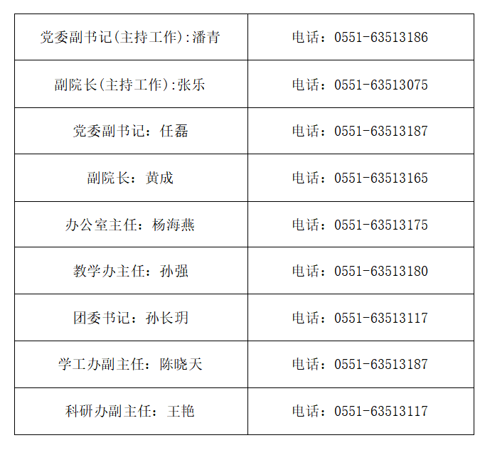 学院办公电话一览表