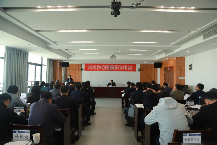 本网讯 3月16日,学校在南校区实验综合楼21楼第一会议室召开2022年度基层党委(党总支)书记抓党建述职评议考核会议,校党委委员、各基层党委(党总支)书记、职能部门主要负责人、两代表一委员、基层党员群众代表参加会议,校党委书记孙道胜主持会议。