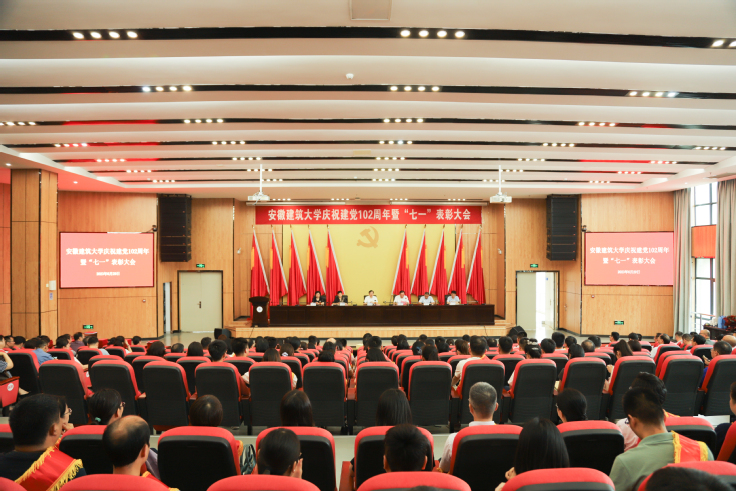 本网讯 6月29日,学校在南区实验综合楼报告厅召开庆祝中国共产党成立102周年暨“七一”表彰大会。校领导孙道胜、蔡新立、王玉兰、闵杰、李早出席大会,全校副处及以上干部、党支部书记,“光荣在党50年”老党员吴家桂,受表彰的2023年度先进基层党组织代表、优秀共产党员、优秀党务工作者和优秀巡察干部,新发展的党员代表参加会议。校党委常委、副校长蔡新立主持会议。
